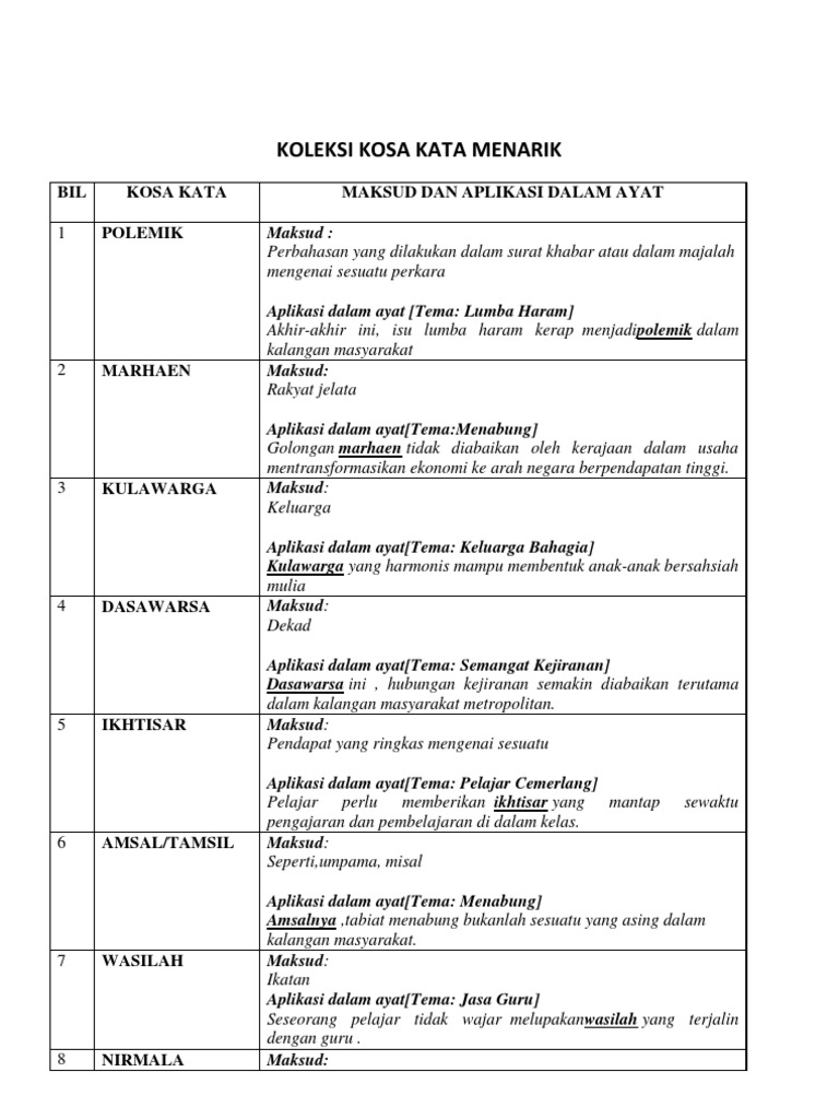 Kosa Kata Umum Istilah Download Docx. You have just read the article entitled maksud kosa kata dan contoh ayat. Kosa Kata yang Boleh Digunakan Dalam Karangan.